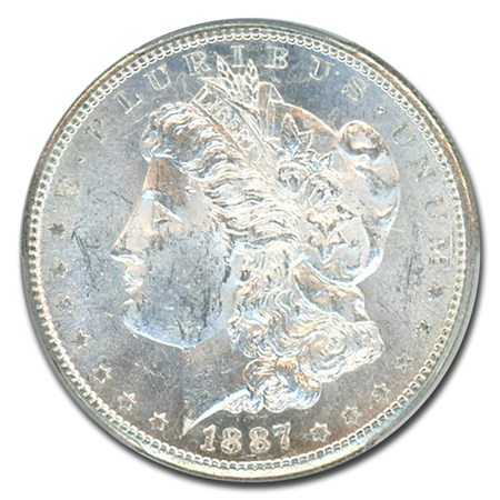 Certified Morgan Silver Dollar 1887-S MS64 PCGS toned