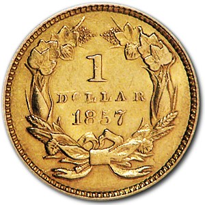 1857 $1 Indian Head Gold Dollar AU