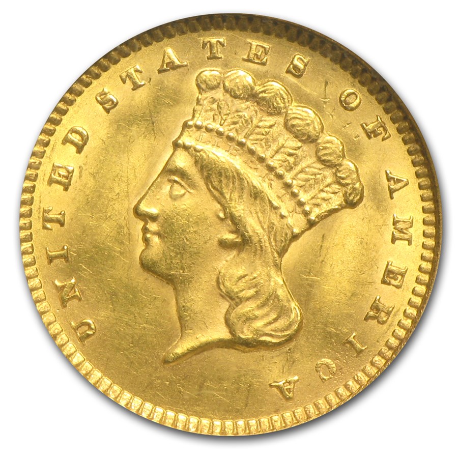 1873 $1 Indian Head Gold Open-3 MS-63 NGC