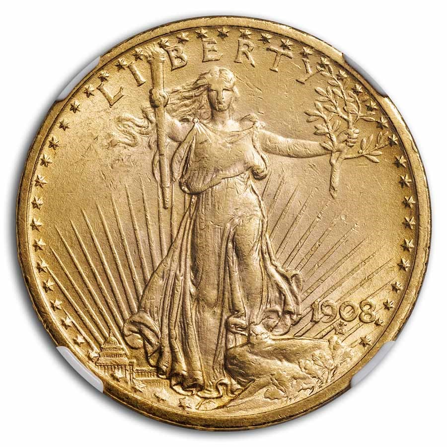 1908 $20 St Gaudens Gold Double Eagle No Motto MS-62 NGC