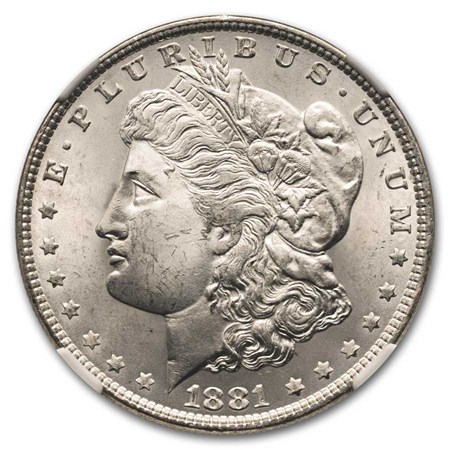 Certified Morgan Silver Dollar 1881-S MS67 NGC