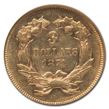 1874 $3 Gold Princess AU-58 NGC