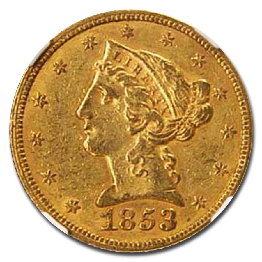 1853 $5 Liberty Gold Half Eagle AU-55 NGC CAC