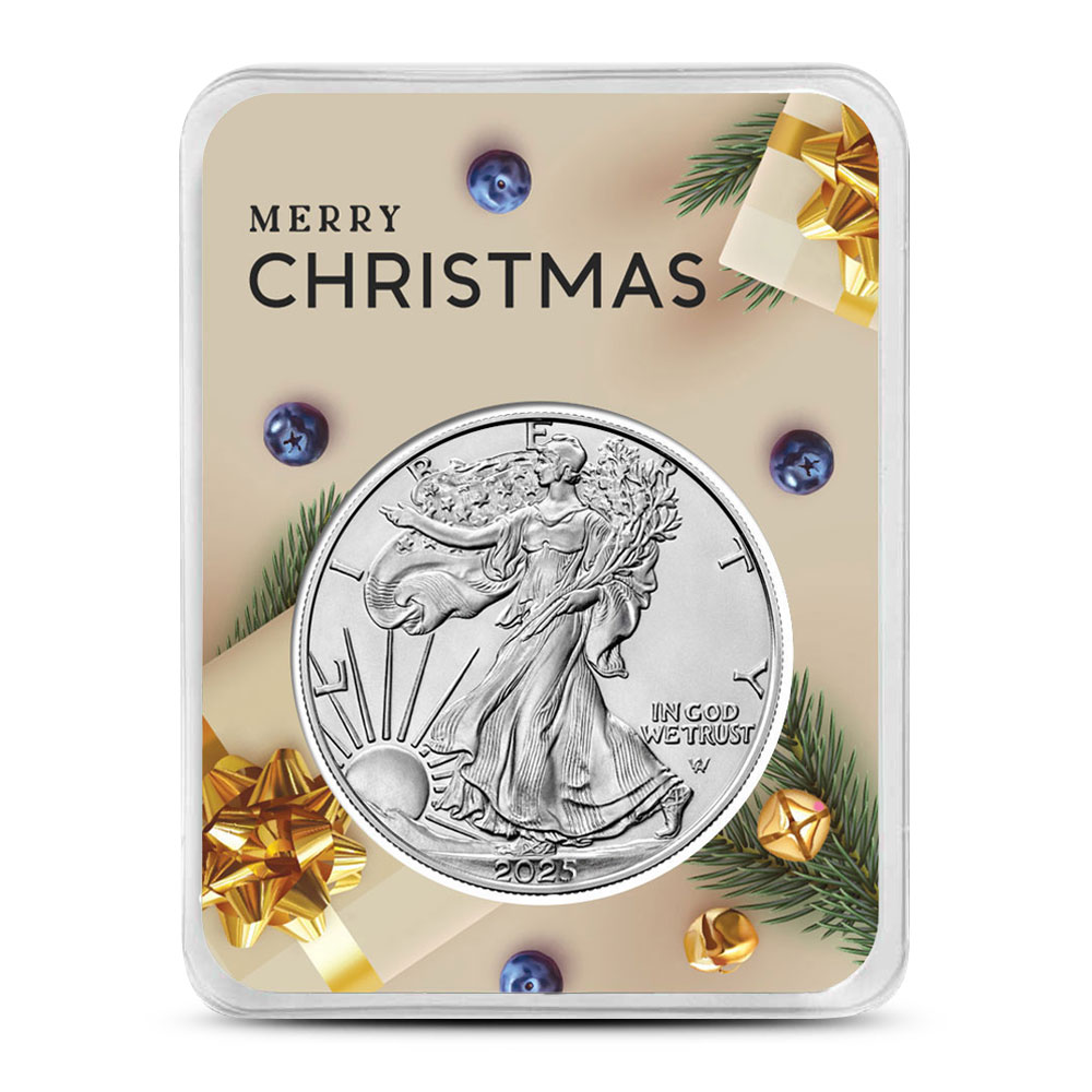 2025 1 oz American Silver Eagle Coin (BU, Merry Christmas Present Card)