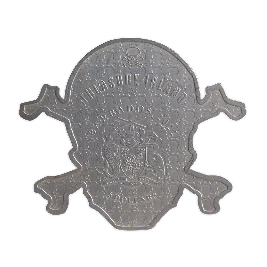 2022 5 oz Barbados Silver Treasure Island Skull Coin